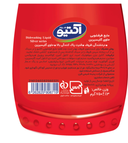 محصول نمونه تستی مایع ظرفشویی قرمز اکتیو حاوی گلیسیرین 750 گرمی با رایحه توت فرنگی